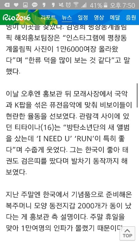 제가 올림픽기사를 자주 보는 데 보다가 방탄분들 언급이있더라구요 대한민국 국민으로써 뿌듯 했는 데 이 기사가 많은 분들이 모르고 계셔서 아미분들께서도 못보셨을까봐 이렇게 글쓰러왔습니다..