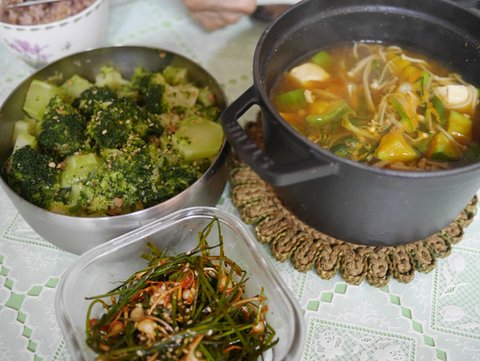 브로콜리 엄청 푹삶아야해요 ㅠ 그거랑 달래된장찌개하구 달래무침해서 밥먹었어요