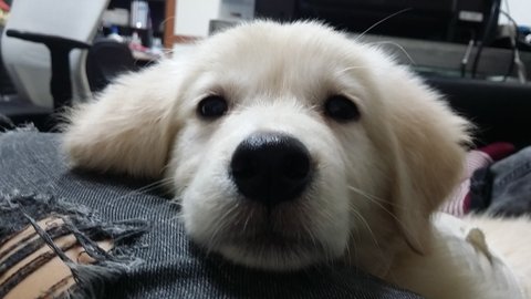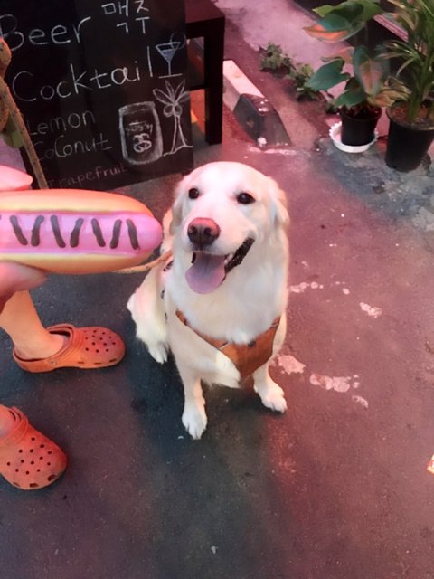 크림색 골든리트리버 처음 봐요! 졸귀졸리ㅎㅎ 강아지가 주인의 사랑을 많이 받나봐요! 생긴것도 순둥순둥하게 생겨서 웃는 모습이 너무 사랑스럽네요
