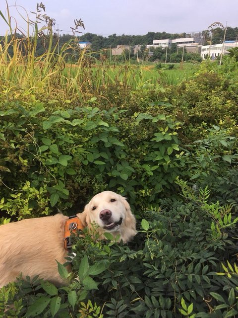 작은 숲속같은 곳인데 졸리가 이곳에서 꽃내음, 풀내음을 맡는 걸 좋아합니다.