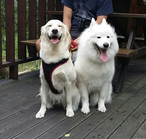 졸리의 절친 사모예드 구름이와 함께 찍은 사진입니다.