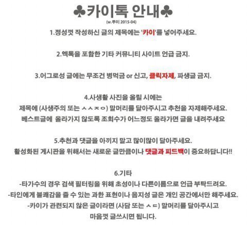 준수사항 꼭 지켜주시고 다같이 카이톡에서 즐겁게 달려요 ㅂ0ㅂ