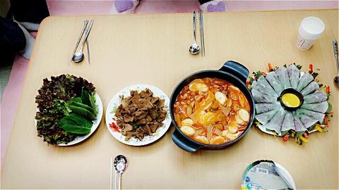 요건! 오리훈제무쌈말이하나만 제가하고 불고기랑 찌개가 신랑