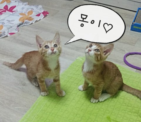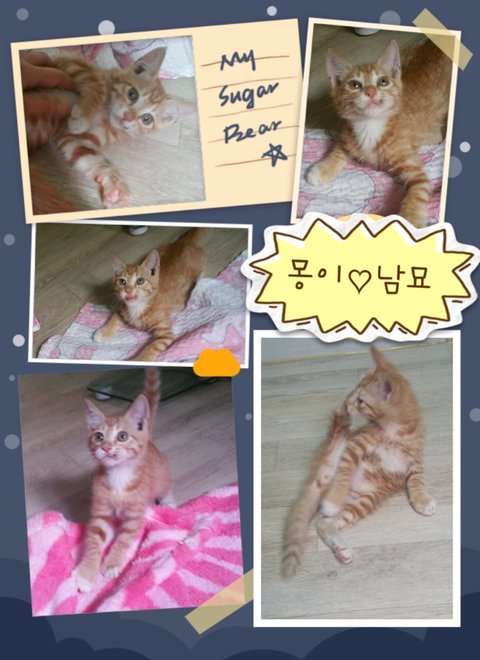몽이/ 남묘 이개월 반~ 삼개월가량 추정이고요 몽이는 첫날에는 사람 보면 피하고 숨어있더니 지금은 만지게도 하고 쥐돌이보면 환장해요ㅋ 성격 자체가 겁이 많지만 관심 많이 가져주시면 주인을 많이 의지하고 따를 스타일이고요.