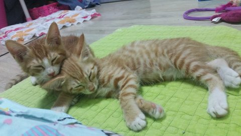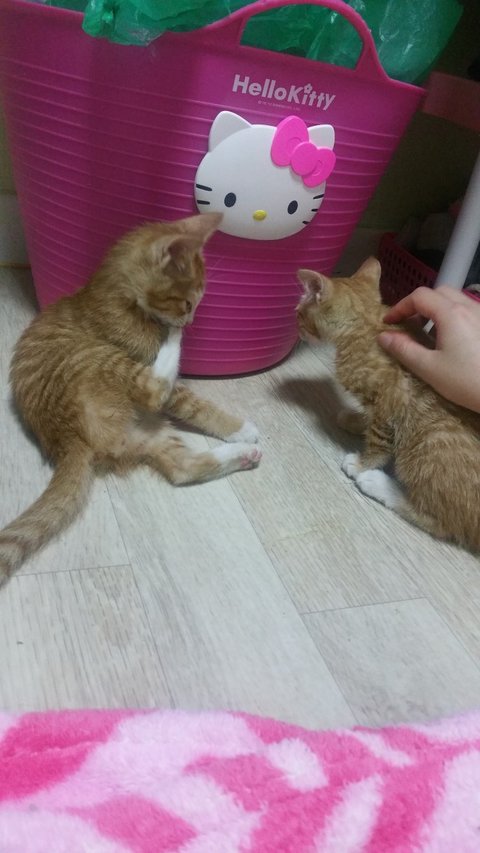 제가 오년동안 밥주는 곳에 여느때처럼 밥셔틀 갔는데 치즈 아가 두마리가 사료그릇에 들어가서 허겁지겁 먹고있더라고요 작은녀석들이 비를 맞고 있어 너무 짠해서 그날 구조하고 싶었지만 어미가 있을지도 모르니 그뒤부터 매일 삼십분에서 한시간씩 일주일동안 지켜봤어요 낮에도 가보고 제가 일이 새벽에 끝나서 새벽에도 가봤지만 어미냥 모습은 전혀보이지 않고 둘만 항상 붙어다니더라고요 결국 새벽에 이동장 가져가서 한시간정도 씨름끝에 구조했어요