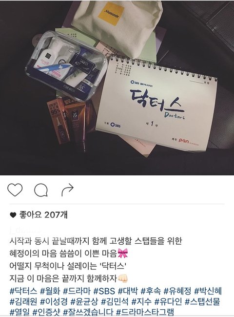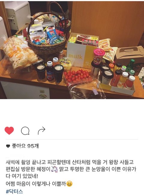 이번에 닥터스 촬영하면서 현재까지 밥.간식차 총 12번 받았어. 팬들, 용준형, 택연, 이홍기, 채정안 등등.. 이렇게 주변 사람들한테도 잘하니까 마땅히 큰 사랑 받는거지. 다른 글 말처럼 박신혜 인성이 '쓰레기'에다 더러우면 정말 이럴 수 있을까? 용준형한테는 도시락도 보내주고, 채정안 드라마때도 간식차 보내고, 이홍기 콘서트도 바쁜 스케줄 와중에 가줌.