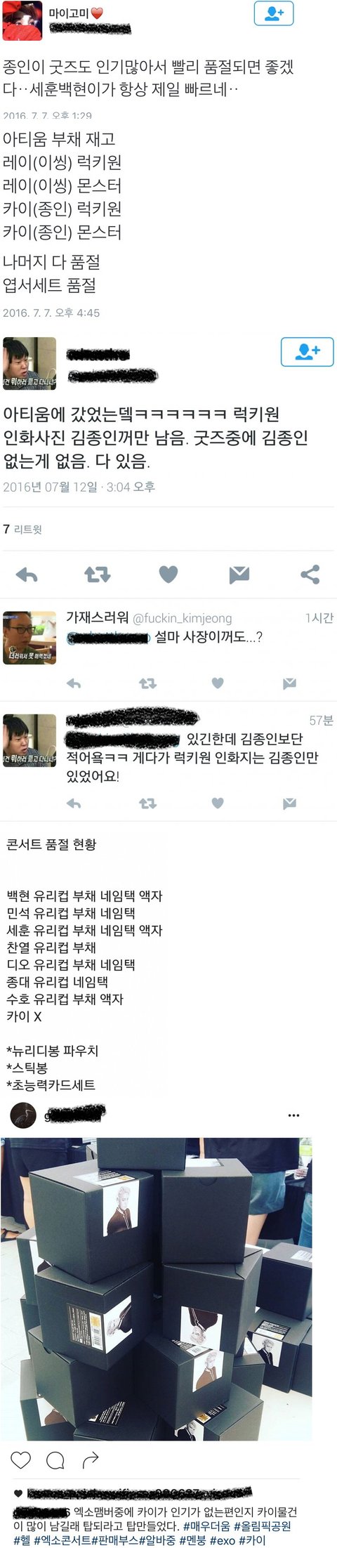 알바생이 카이 굿즈만 안팔린다고 인증했잖아 ㅋ
