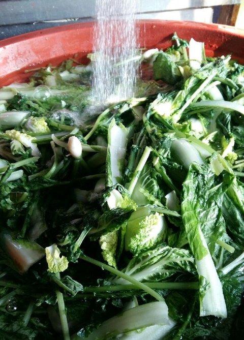 열무랑 얼갈이를 소금물에 절여줍니닷!