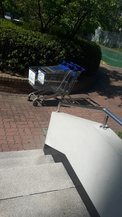 마트카트는 마트에서만 끄는건데 왜 집앞까지 끌고오는거죠.