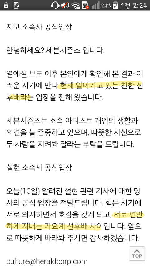 아 진짜 답답해서 못살겠어 지코만 부인한거 아니라고ㅋㅋㅋ 설현도 인정 안했어 둘이 공식입장 친한 선후배사이다라고 똑같잖앜ㅋㅋㅋㅋㅋ 근데 왜 설현은 인정하고 지코는 인정 안한걸로 몰고가? 왜 그러면서 지코는 까고 설현은 지코 혼자 좋아하는것처럼 소설쓰고???