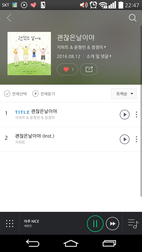 지3하트님이 이번에 개그우먼 정1경미 님 개그맨 윤2형빈 님이 함께 참여하신 '괜찮은 날이야' 라는 곡을 내셨어