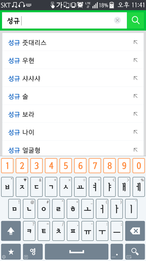 검색창에 성규까지만 쳤는데 줏대리스있어서