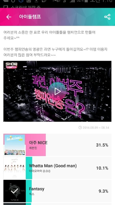 ㅅ챔 투표보여?ㅠㅠㅠ 우리 진짜 많이 올렸어ㅠㅠㅠㅠㅠ 이제 조금만 더하면 ㅇㅇㅇㅇㅇ분들 이길수 있어ㅜ!! ㅅㅂㅌ분들은 활동끝나서 집계안되니깐 조끔만 힘내자!!!