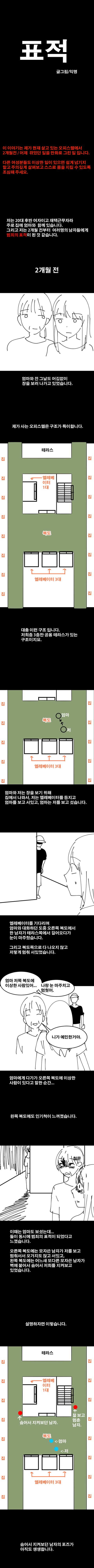 집에 들어가기전 주변을 항상 두리번 거리고,  엘레베이터에 탈때 남자가 타면