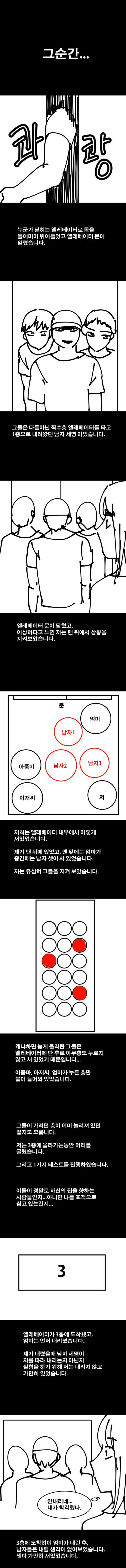 이런 놈들때문에 그냥 아무생각없이 엘리베이터 타고 내려가다가 눈마주친 여성분이 저를 공포심 가득한 눈으로 보고 있었던 상황이 일어나는 거죠... 하.. 지금 생각해도 억울함... 저런 놈들 때문에...