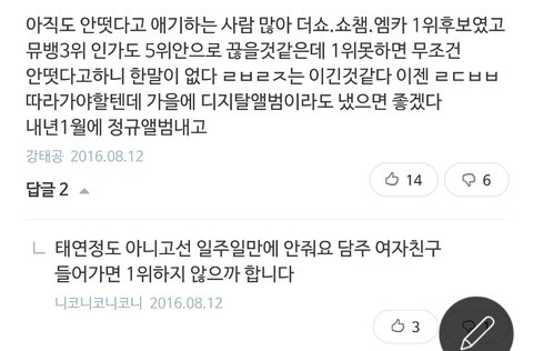 다음 주부터 블핑 아이오아이 빅스 엑소 등 나오면서 순위 어떨지 참 기대되네.
