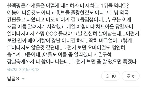 지들은 흙수저 코스프레 지리네ㅋㅋㅋ비원에이포가 벌어준 돈 잘 쓰면서ㅋㅋㅋ블핑이 잘나가니깐 개아니꼬왔나봐