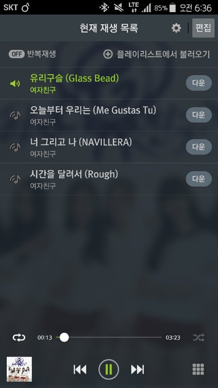 이렇게 타이틀곡 네개로 재생목록 해놓으면됨