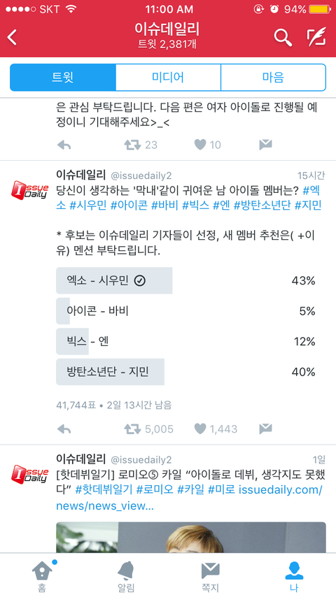 공지밀어) 짹가서 이슈ㄷㅔ일리 찾아서 투표해