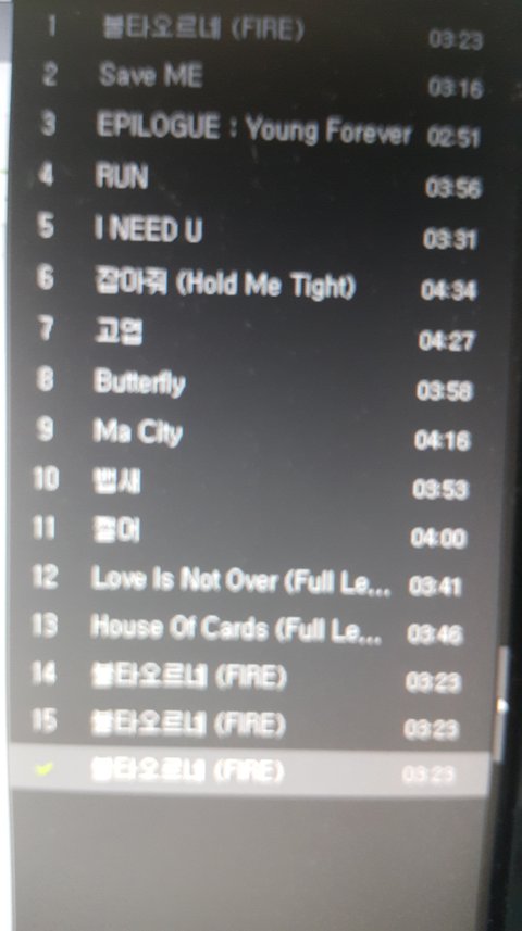 내가 팬톡 진짜 오랜만에 들어왔는데 지금 막 스밍 으쌰으쌰하는 분위기라서.. 나 불타오르네 활동할때 돌리던 스밍목록 그대로 이제까지 돌리고있었는데 보니까 차트아웃된거 좀 있어서 스밍목록 바꼈을거같기도한데 내꺼 스밍목록 이상해?ㅜㅜ 바꿀거 있으면 알려주라..