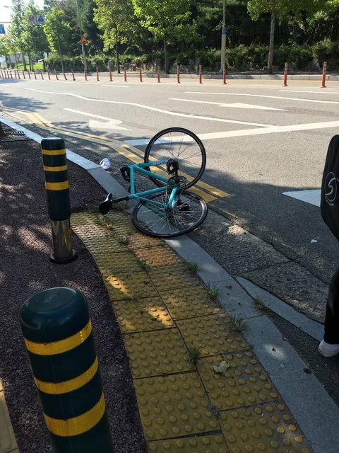 그 자전거는 역주행이고 속도가 굉장히 빠른 상태였고, 본인과 그 쪽 부모님께서 원래 그 자전거 핸들이 제대로 돌아가지 않았었다고 이야기 했습니다. 그 자전거 주인 부모님과 통화해서 보험회사를 불렀고 돌아온 답은 우리가 다 물어내야한다는 대답뿐이었습니다.
