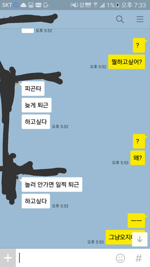 아무말없고 일단 끊자고하더니