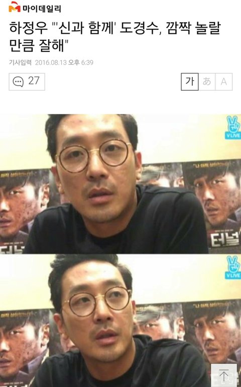 마이데일리 = 신소원 기자] 배우 하정우가 영화 '신과 함께'에 함께 출연 중인 도경수에 대해 언급했다.