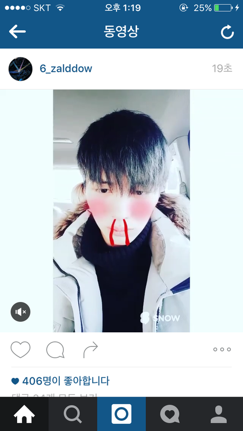 육성재가 두어시간있다가 그아픈몸을 이끌고 엄지손가락들고 입뽀뽀하고선 인스타올림