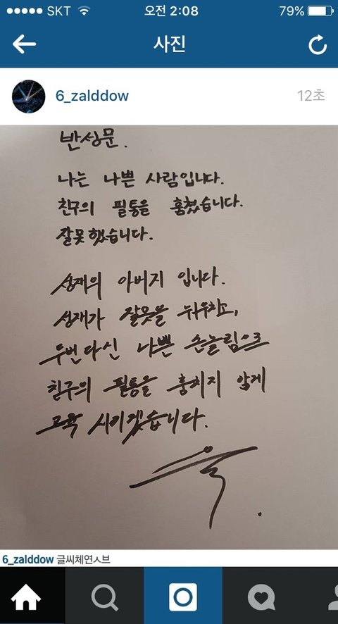 육절부절하던 성재가 6일라인새벽에 갑자기 반성문올림
