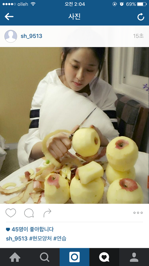 새벽2시쯤 설현이 인스타세개올렸는데 사과 하나를 먹었다고 글쓰고 사과가 6개임을 표현함