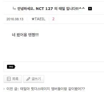 태일이가 오늘 답변 이렇게 달아줫어 ㅜㅜ