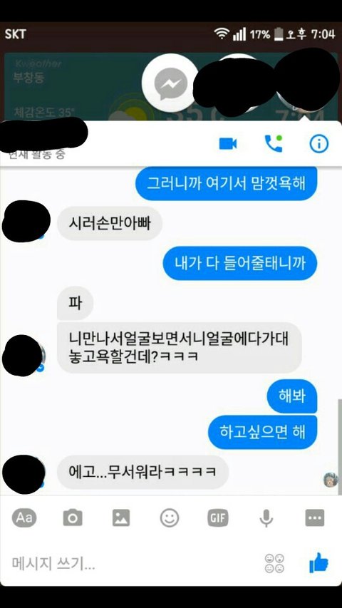 1학년한..3,4명?한테똥군기잡으며욕하더라고요..제가하지말라했더니또제뒷담화..하..3학년올라오고나서부터아주제동생한테손까지댑니다ㅋㅋㅋㅋㅋㅋ제가하지말라고아무리화내고소리질러도돌아오는건뒷담,제동생갈굼뿐이었죠하..진짜이젠제가무슨말을해도무시하고연락해도무시하고
