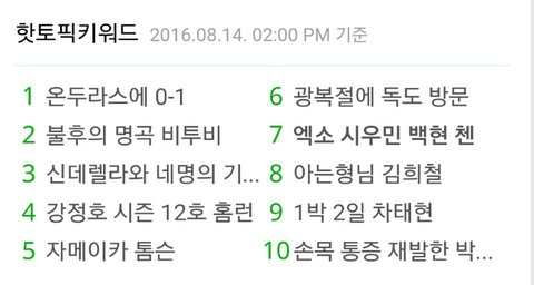 헤헤 초록창 핫토픽키워드에 시우민 백현 첸 올라왔오