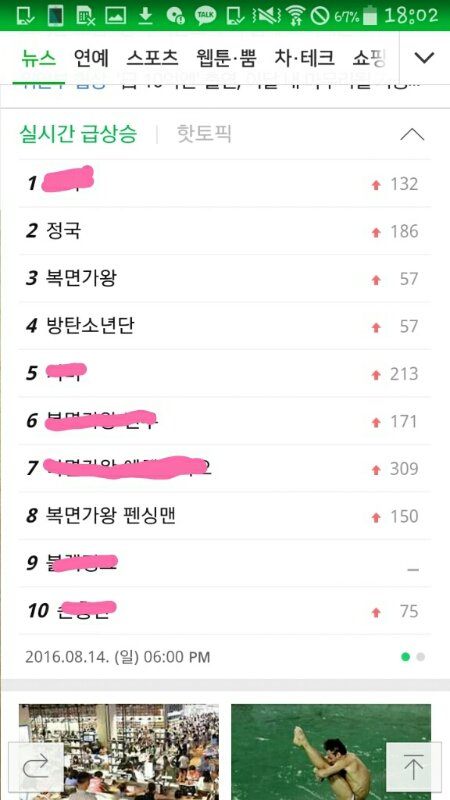 정국이 방송직후 실검순위