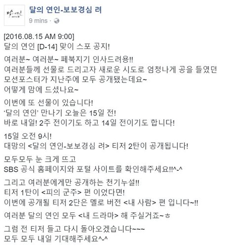 15일 오전 9시!<달의 연인-보보경심 려>티저 2탄이 공개