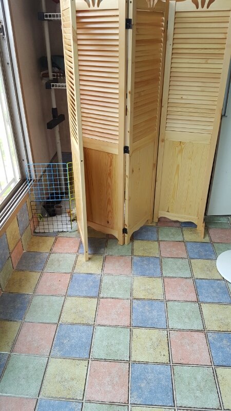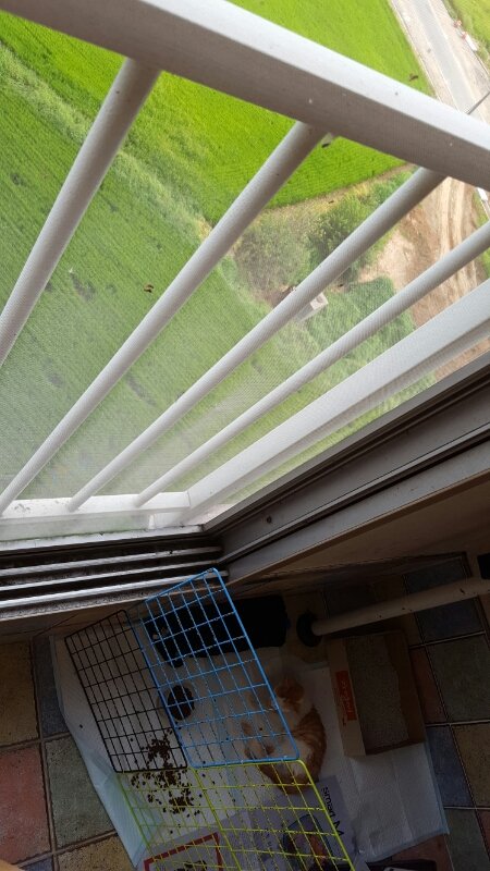 오늘은 엄마랑 아침에(사진참고)베란다에 임시집(?)을 잠시 만들어놓고 미니철창을 놓고