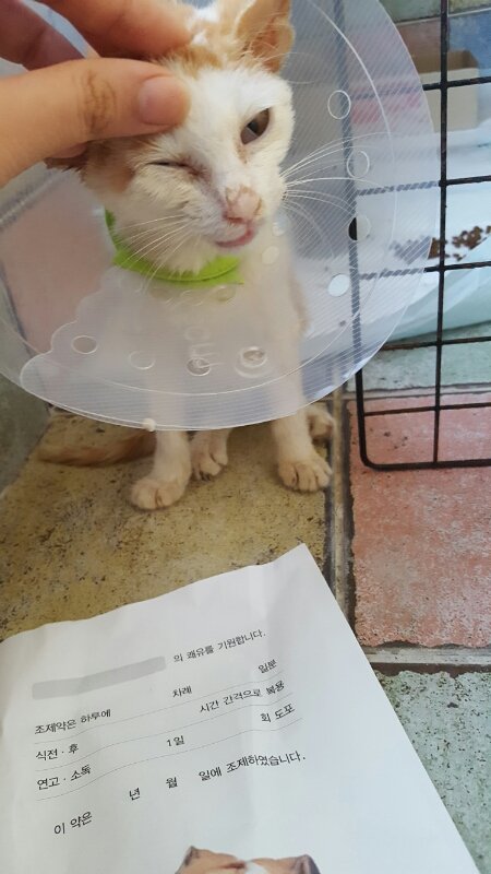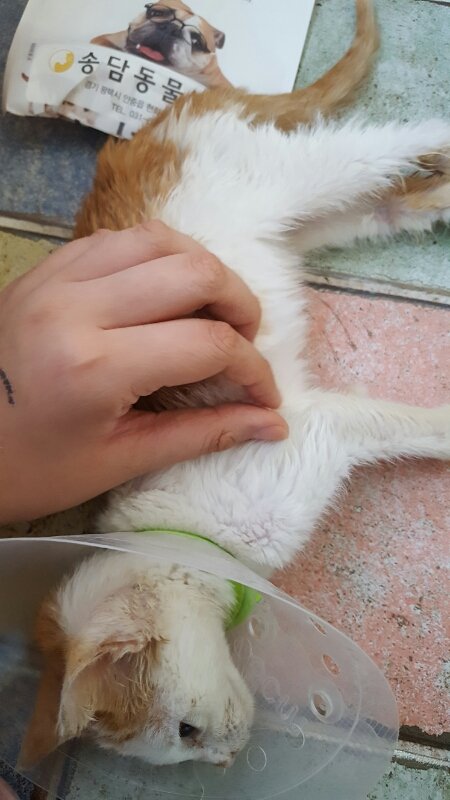 그리고 다행히도 입원했었던 극복이 상태는 매우좋다고합니다! 병원에서 목욕까지 해주셨다고하네요 상처가 곪지않는 약을받고