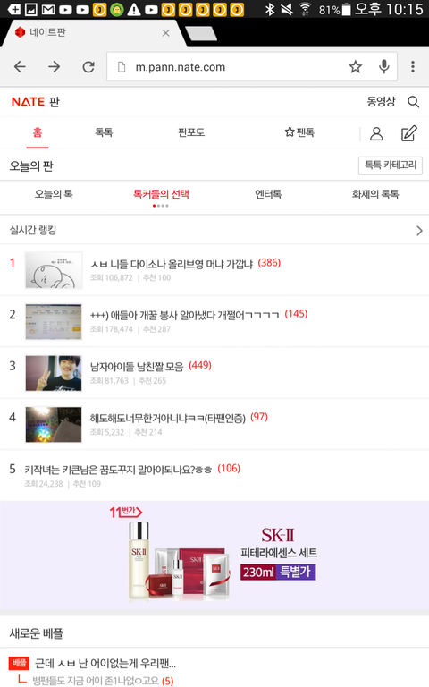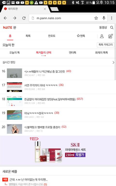 보다시피 톡선에 정국이그란 3개있믄데 반응이 다 괜찮아 심지어 아직 톡산안된글에는 칭찬도 수두룩하고 혹시 마음쓰는이삐있음 안그랬음좋겠다