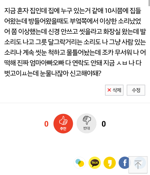 경찰들 와서 집 뒤지고 있고 나는 오빠랑 밖에 있는중임 어쨌든 나 살아있어 걱정해준 애들 고마워