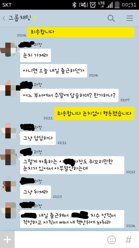 문제였다면 임원의 카톡에 답했다는것 하나에