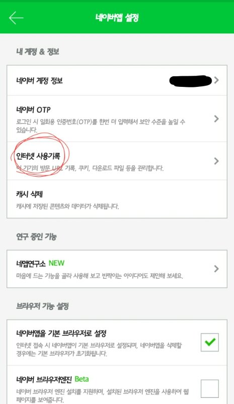 내이년앱들어가서 앱 메뉴에 있는설정누르면 방문url기록잇음
