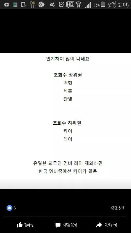17백현악개단이 조작된걸로 백현은 인기1등 카이는 인기꼴등이라고 정치질중