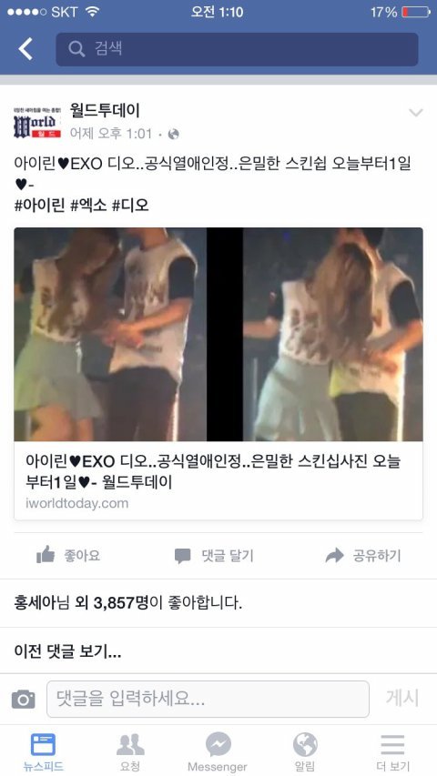 디오 아이린 열애설 때문에 떠넘기기 시전