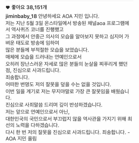 AOA지민의 사과문, 재평가 시급