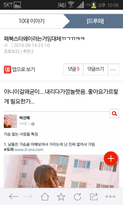 보다시피 제일 위의 댓글을 보시면 박선혜 님 본인이 판에 자신의 이름을 검색하셨다고 언급했습니다