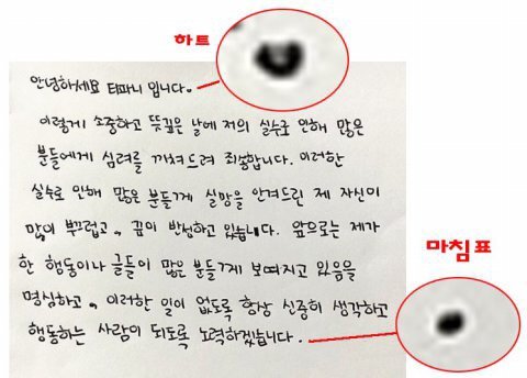 티파니입니다 끝에 마침표 정말 하트임? 기사 뜬 거 보고 충격 받음 여기에 하트 그린 거면 ㄹㅇ 미친 거 아니냐 진짜