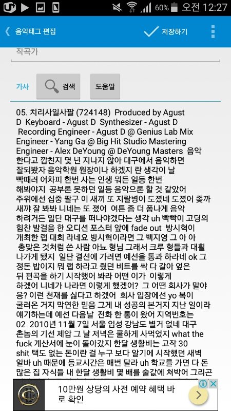 나 아까 가사 보이지도 않더니 지금 저 상태 어플로는 가사 있는데 폰에는 없음 아마 여기서 더 기다리면 폰에도 뜰듯 ㅅㅂ 생각만 해도 설레네 아니 무튼 파일이 커서 로딩되는것 같기도 하고 아니 쉬파 왜 노래에서는 가사 안뜨는데!!!