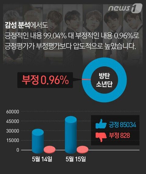 통계자료 본것처럼 애들욕하는 건 0.96%밖에 되지않아 얘들아 너무 겁먹지 말고 윤기가 과거사를 가사에 쓴이유는 이미 어느정도 감당할거 예상하고 쓴걸거야 누가 욕을 하던 윤기말대로 우린 떳떳하고 당당하면 돼