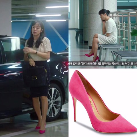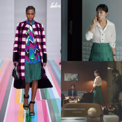 핑크컬러 구두랑 그린컬러의 패턴 스커트 모두 페라가모꺼더라구요..
