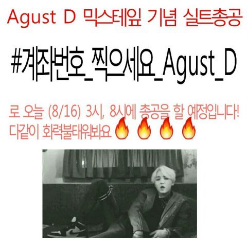 채널공지해도 괜찮은지 모르겠는데 해시 한줄로 돼있는거랑 설명 더 잘돼있는거랑 두개 다 퍼뜨리는 편이 나을 것 같아...!!!! 잊지마 해시 #계좌번호_찍으세요_Agust_D 이거야!!!!!!!!!!!!!